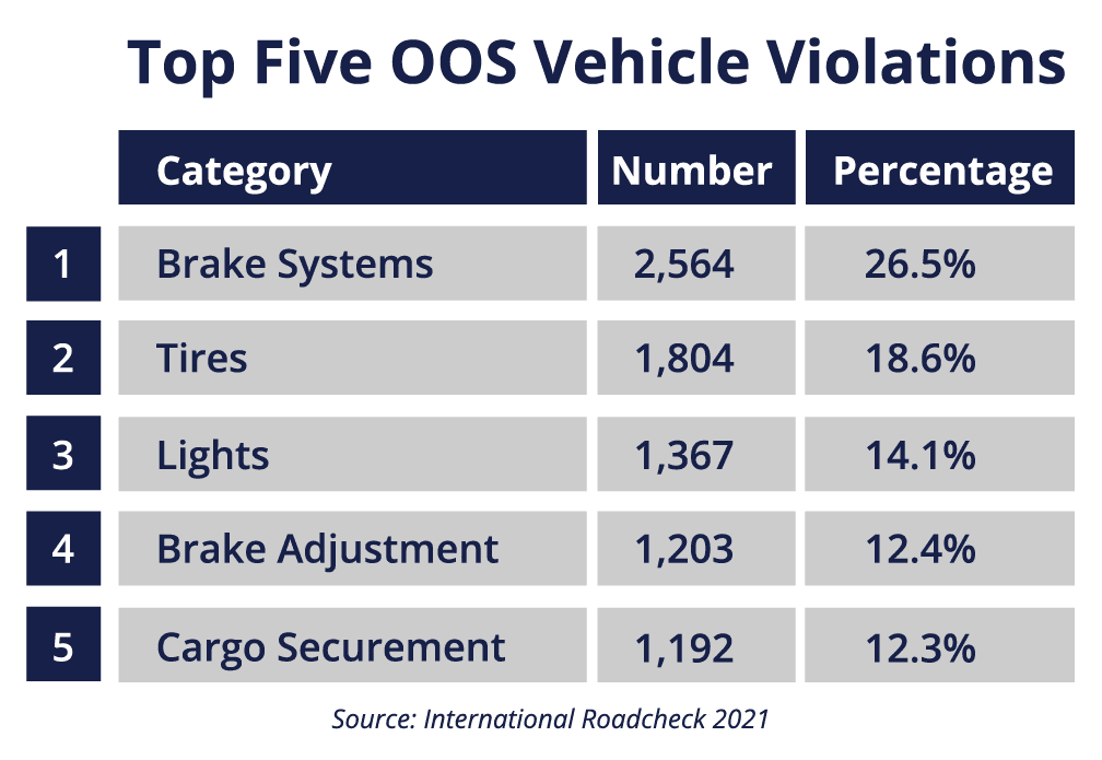 - In 2021, 8,293 vehicles and 2,477 drivers were placed out of service in the U.S.